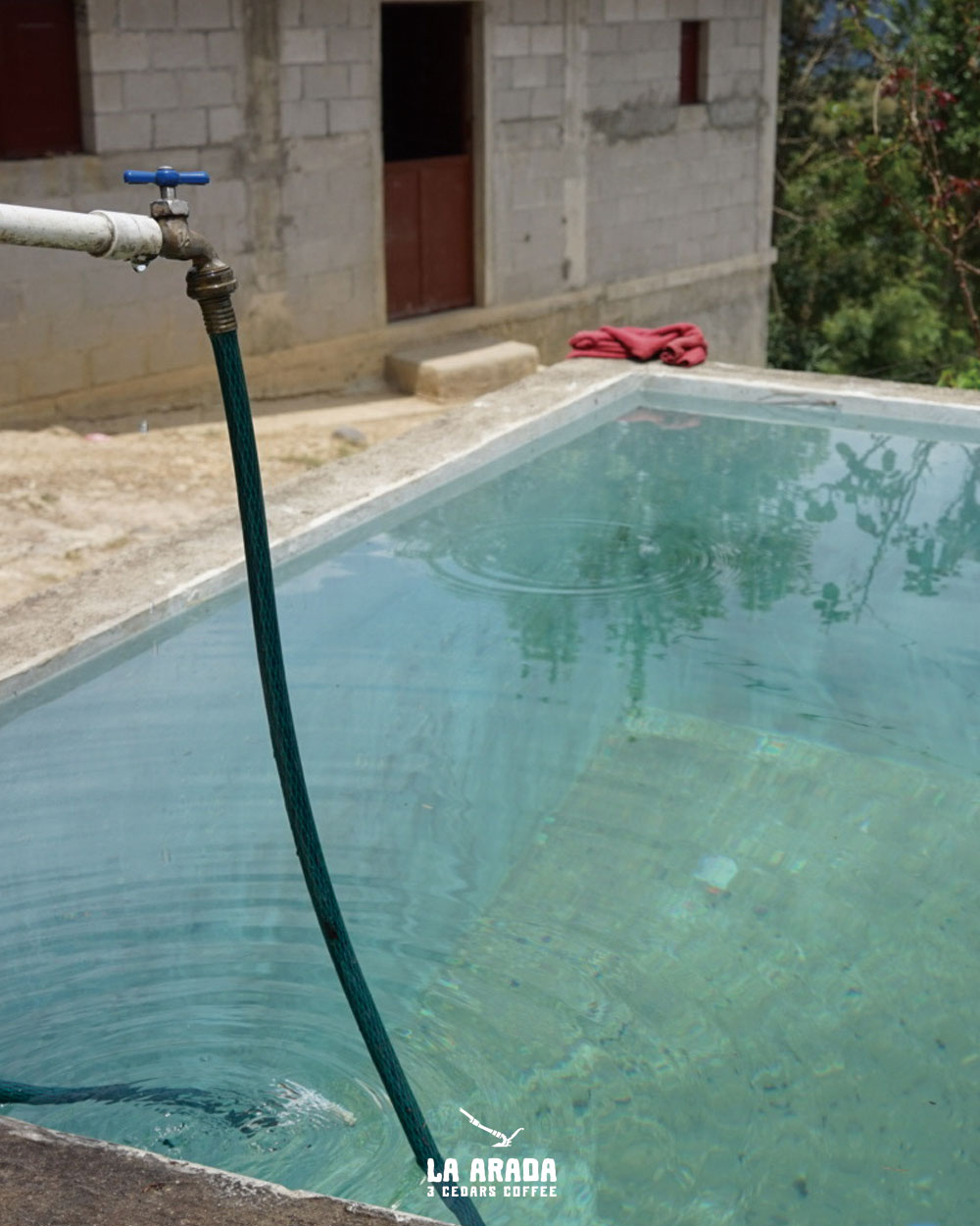 また、農園より約5km離れた山の水源からきれいな水を引いて、水洗処理に利用しています。